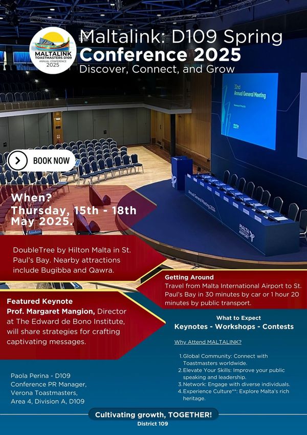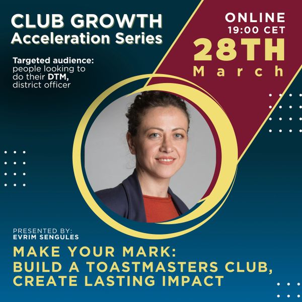 Toastmasters International es una organización educativa sin fines de lucro que desarrolla confianza y enseña habilidades de oratoria a través de una red mundial de clubes que se reúnen en línea y en persona. A través de la práctica regular, los miembros se empoderan para alcanzar sus metas personales y profesionales en comunicación. Fundado en 1924, la organización tiene su sede en Englewood, Colorado, y cuenta con aproximadamente +270,000 miembros dentro de 14,000+ clubes, en más de 150 países.